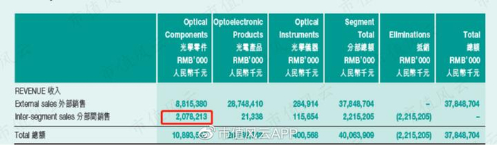 如果将这部分加上,光学零件部门实现的营收规模将达到109亿元。