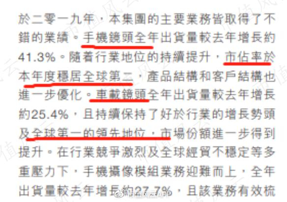 公司表示,收入增长主要是因为手机摄像模组的出货量以及平均销售单价上升。