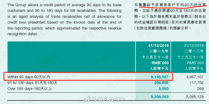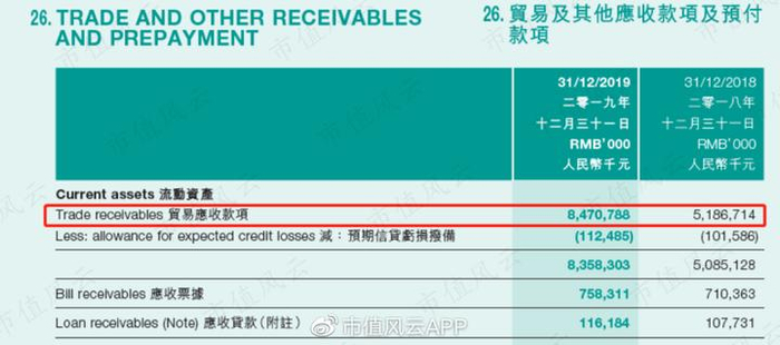 另外需要引起注意的是,2019年底公司账面上贸易及其他应付款总计113.2亿元,相较上年末的70.6亿元大幅增长。