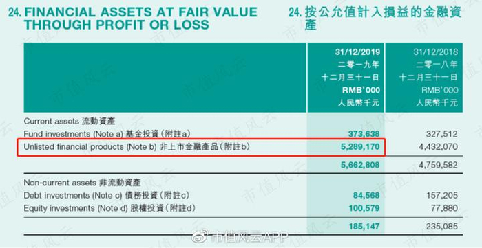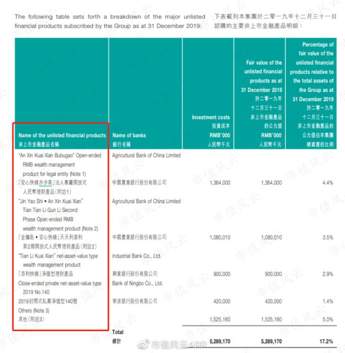 这部分非上市金融产品主要由中国的相关银行管理,主要投资于债券、信托及现金基金等金融资产等。