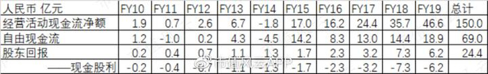 在过去的10年里,公司产生经营活动现金流总计150亿元,由于生产经营的需要,大部分的资金用于购买物业、厂房及设备等,资本性开支占了近乎一半,自由现金流总计为69亿美元。