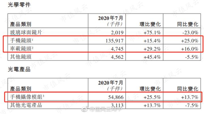 不过从公司披露的7月份出货量数据,我们看到了不一样的东西。首先,手机镜头及车载镜头出货量分别为1.4亿件和475万件,分别同比增长25%和16%,增速均高于上半年。