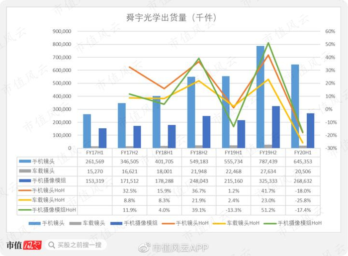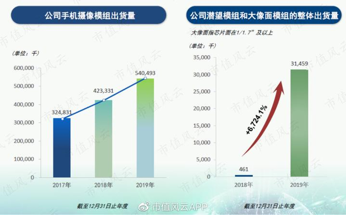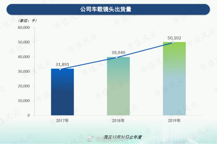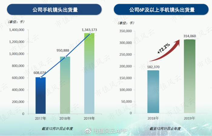 主要是因为2019手机镜头出货量同比上升41.3%,车载镜头出货量同比上升25.4%,以及手机摄像模组出货量同比上升27.7%所致。