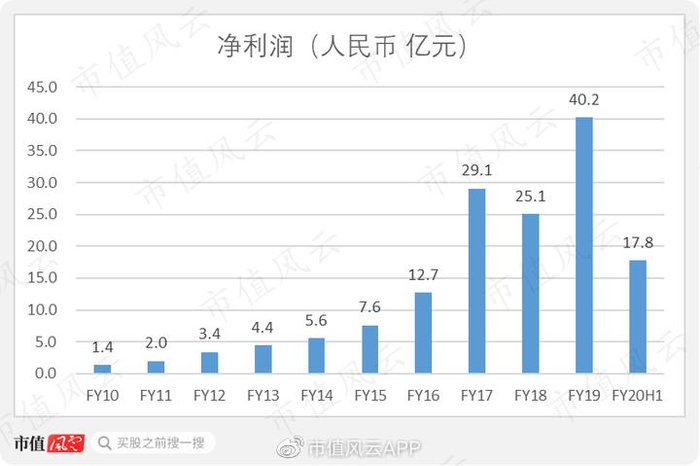 毛利率在2018年下滑至18.9%之后,在2019年反弹至20.5%。随后在2020年上半年下滑至19.5%,相较2019年同期上升1.1个百分点。