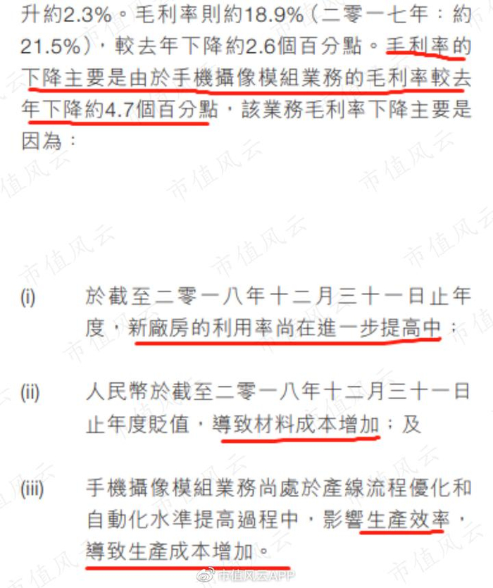 在年报中,公司表示毛利率下滑的主要原因是新厂房的利用率尚不充足,以及人民币贬值,这都导致了生产成本的增加。