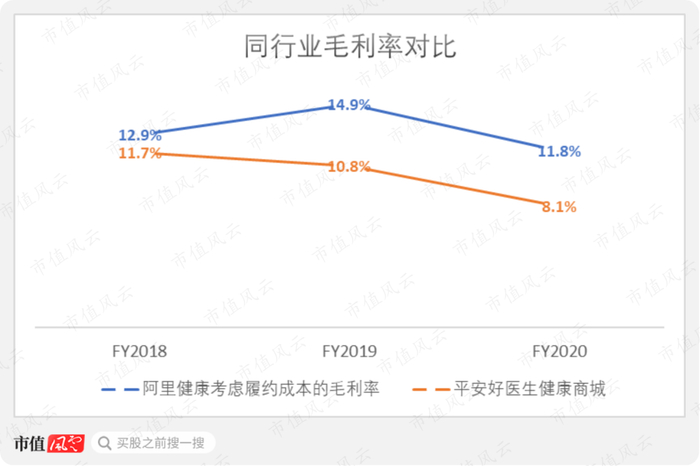 如果把履约费用计算在内,则阿里健康的毛利率仅有11.8%。