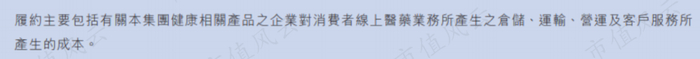不过,阿里健康并没有把履约费用包含在营业成本中,履约费用是指B2C线上医药业务的仓储、运输、营运及客户服务成本。