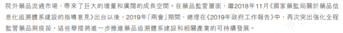 2018年11月和2019年两会期间出台的相关政策,推进了药品追溯体系的建设。