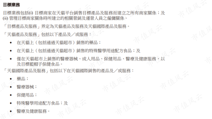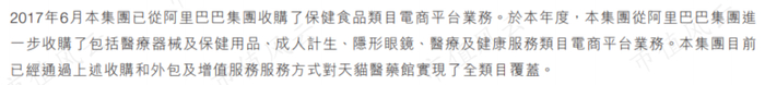 与2018年的收购相比,这次的业务范围新增了天猫上的医药、特殊医学用途配方食品、天猫国际以及部分仅在天猫超市上出售的医药产品。