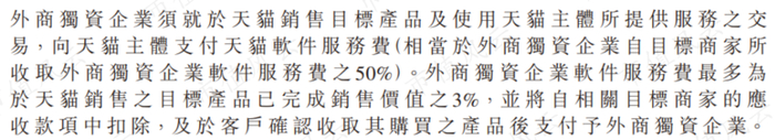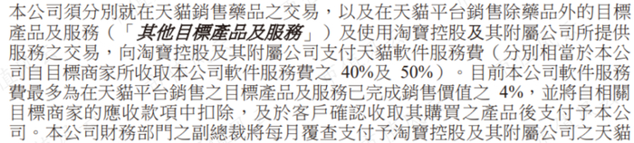 在这一过程中,阿里健康收取不超过销售价值的3%作为服务费,同时这3%中的一半支付给天猫作为使用天猫服务的服务费。