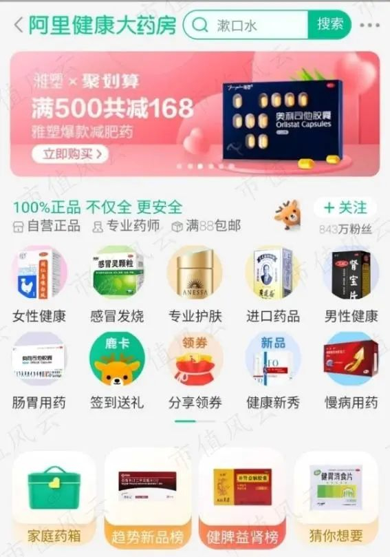 风云君认为显然不能把阿里健康作为一个个体公司来看待:因为它其实代表了阿里旗下的天猫医药平台。