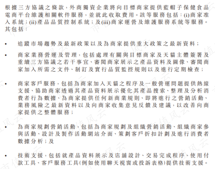 新收购的业务是为天猫平台上的保健食品商家(注:不包括药酒、功能饮料等)提供电商平台服务。