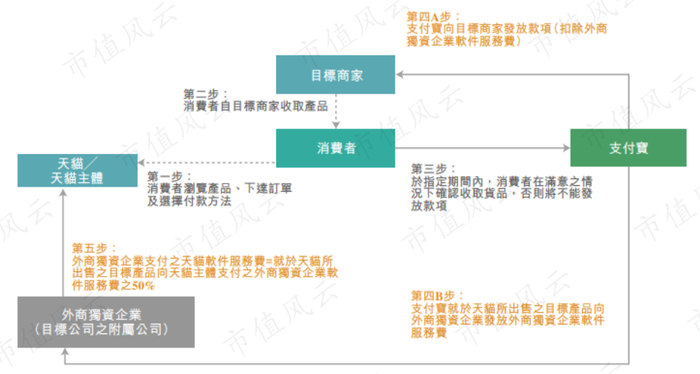 也就是说,阿里巴巴把电商平台服务和电商平台基础架构分离了,基础架构仍归天猫,双方5/5分成。