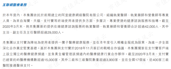 在年报中,阿里巴巴是这样对阿里健康进行定位的: