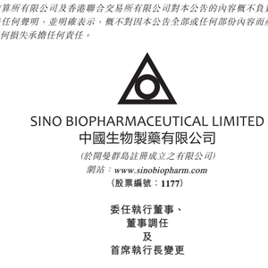 近日,中国生物制药发布公告,公司首席执行长谢炳卸任,并获调任为公司董事会资深副主席。谢炳将留任公司执行董事以及执行董事委员会及提名委员会成员。