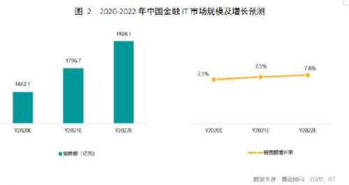 图2 2020-2022年中国金融IT市场规模及增长预测