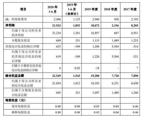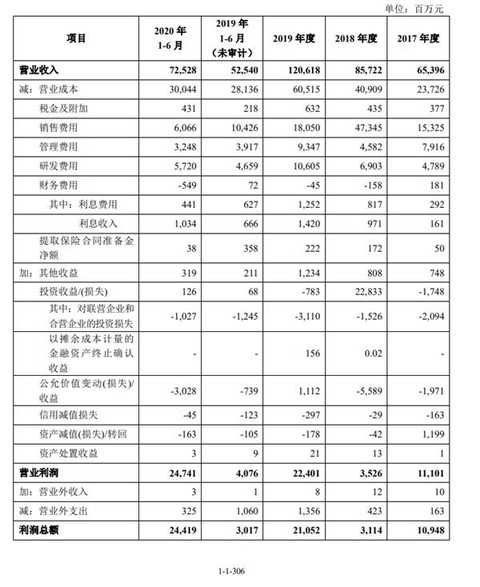 2017年度、2018年度、2019年度、2020年1-6月,公司研发费用分别为47.89亿元、69.03亿元、106.05亿元、57.20亿元,占营业收入的比例分别为7.32%、8.05%、8.79%、7.89%,主要为公司持续加大技术及研发投入力度所驱动。