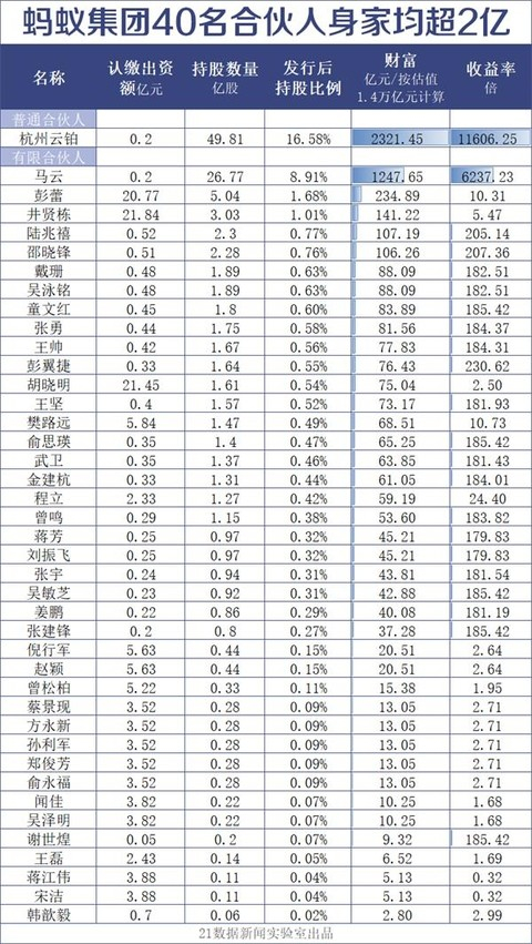 看点四:员工持股平台占股4成,40名合伙人身家均超2亿元