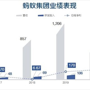 2019年蚂蚁营收突破千亿大关,为1206.18亿元,同比增幅超40%。