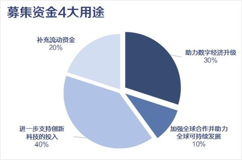 其中,40%将用于进一步支持创新和科技的投入,30%助力数字经济升级,10%加强全球合作并助力全球可持续发展,剩下的20%用来补充流动资金。