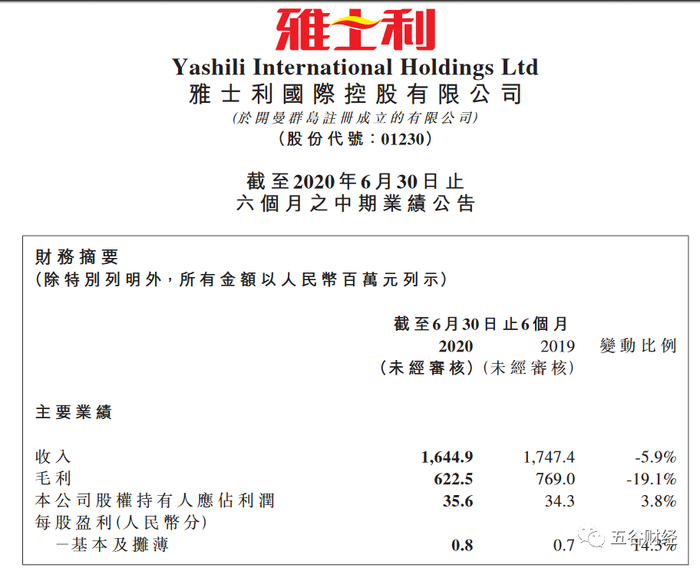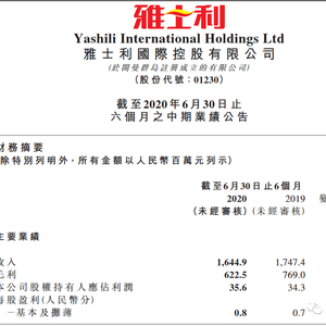 8月27日早间,雅士利国际公开了截止2020年6月30日止六个月之中期业绩公告,收入下滑、利润增长。