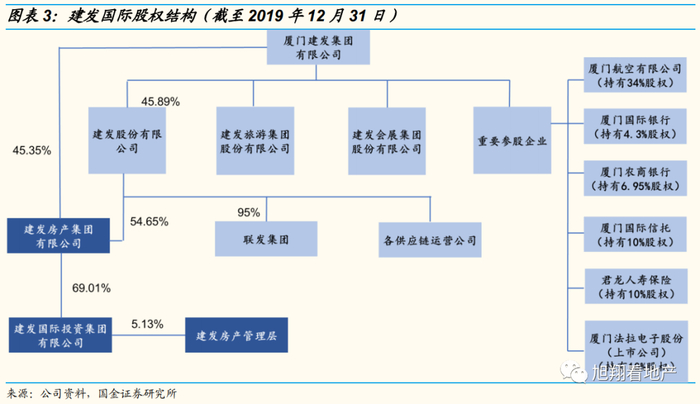根据建发国际公开资料显示,截至 2019 年底,建发房产作为股东直接持 有建发国际股份 69.01%的股份。建发集团间接持有 48.6%的股份。