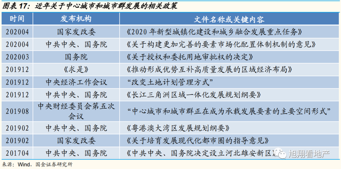 长期市场机会来看,中心城市和城市群是中国城市化下半场的主要驱动力。2019年以来,中心城市及城市群多次在重要会议及意见中提及,相关政策频出。2019年8月,中央财经委员会第五次会议,明确了中心城市及城市群的发展战略。2020年4月中央及国务院发布的《意见》中关于土地要素改革的内容,对于进一步推进以中心城市和城市群为特征的城市化进程,以及降低城市化成本有深远意义。结合土地要素改革以及户籍制度,中心城市和城市群的房地产市场迎来长期机会。
