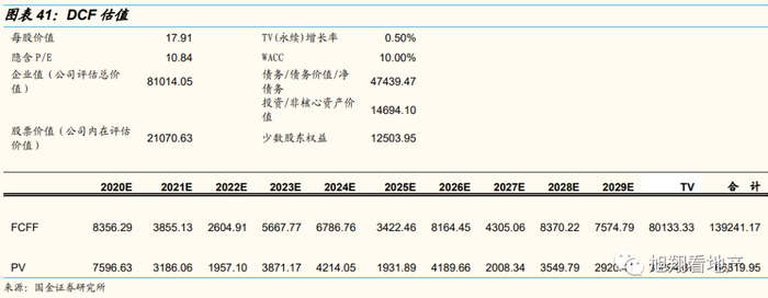 我们采用FCFF法对公司进行估值,TV增长率为0.5%,Wacc为10%,2020-2022E对应FCFF为83.6亿元、38.6亿元、26.0亿元, 股票价值为210.7亿元,每股价值17.91元。