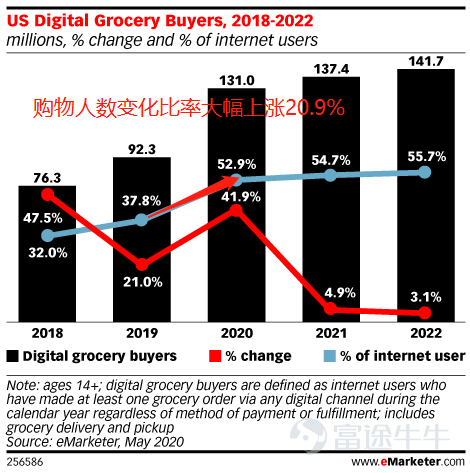 线上渠道一直是小家电的主要渠道。由于疫情的原因,2020年上半年欧美国家加大封锁力度,导致欧美民众的居家时间大幅增加。居家时间的增长,让消费者们开始注意起家居清洁用品及厨房用品。根据Emarketer统计,线上电商的发展在这3~4个月之间加速了3-4年的进程。