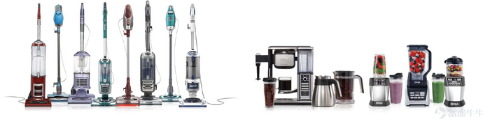 2)Shark & Ninja: Shark专注于清洁家电,而Ninja专注于厨房家电。该品牌是美国第二大小家电企业,其中吸尘器排名市场份额第一名,扫地机器人、蒸汽拖把、多功能烹饪煲排名市场第二名。竞争者有广为人知的戴森,iRobot等等。