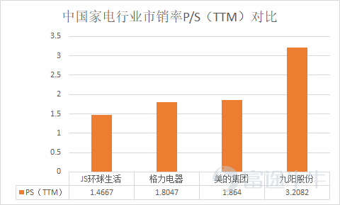 最新财报发布后,公司市盈率TTM从公布前的94倍回归到了43倍。公司目前正处于调整期,因此阶段性失真的PE并不适用于给JS环球生活估值。家电行业属于销售收入和利润率都较为稳定的行业,所以市销率也可以同样被运用。通过对比,JS环球是国内家电行业中市销率(P/S)最小的,恰恰证明了公司股票现在的投资价值。