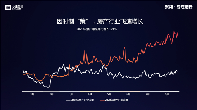 对于房产行业来说,房产行业受疫情影响,2020年春节之后的增长小高峰被推迟。伴随着疫情的消退和房产市场的回暖,小米为房产行业制定专属提升策略,为增长赋能助力。