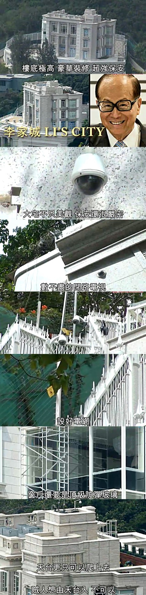自从经历了绑架事件之后,李嘉诚十分注意家庭安全,有报道指他将一家人居住的大宅改装成“安全屋”,加强了安保系统,每一层楼都有秘密房间,可以抵御匪徒攻击。