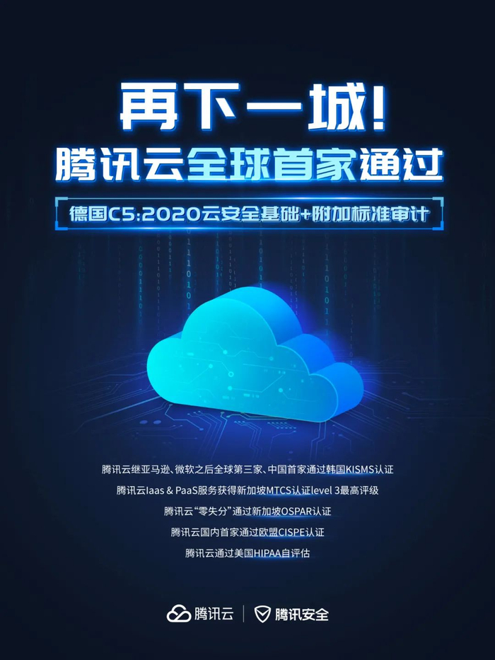 腾讯云持续深入探索安全合规和防护研究,加速海外布局,取得了一系列的成绩。近日,腾讯云通过德国C5:2020云安全基础和附加标准审计,成为全球首家通过该标准的云服务提供商。