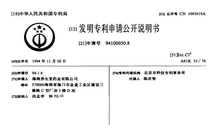 养生堂的早期专利(来源:谷歌专利、财经涂鸦)