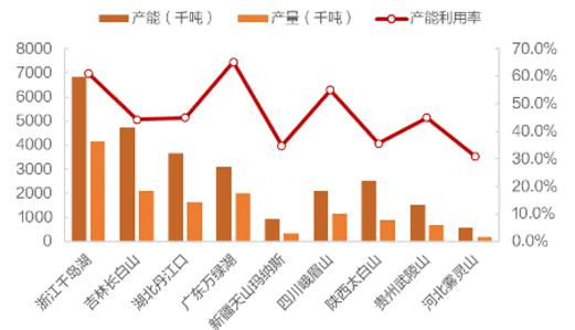 截至2019年底,公司饮用水整体产能为26038千吨,产量为13716千吨,产能利用率为51%。来看下不同生产线的产能利用情况: