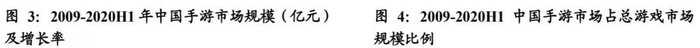 而手游市场占据总游戏市场的规模也从2009年的2.4%持续攀升至2020H1的75.0%。目前,手游已占据我国整个游戏行业3/4的市场,成为游戏产业中最重要的力量。