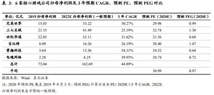 1)我国游戏行业中的精品游戏公司仍处于高速增长阶段,2020上半年中报表现优秀的6家精品游戏公司归母净利同比增加44.69%,对应平均2020年预测PE为30.99倍。根据Wind 2022E预测看,6家公司预计2019-2022年3年CAGR达44.89%,PE及PEG均有提升空间。