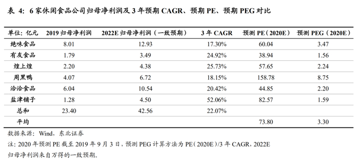 6家休闲食品工资2020E平均预测PE为73.80,远高于游戏的30.99,对应3年CAGR分布于17%-53%之间,整体预测增长率为22.07%,显著低于游戏的44.89%。然而该6家公司获得了平均3.30倍的高预测PEG(2020E),显著高于游戏的0.97,说明该品类深受市场认可。我们认为,尽管游戏行业已经经历一轮市场的正视,但是其作为可选消费品的本质仍未被认识到,盈利的稳定性也逐步被证明,并且在高预期增长的加持下,应受到更多认可。