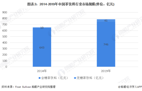 根据国际权威调研机构Frost & Sullivan统计数据显示,2019年我国茶饮料行业市场规模约为787亿元,其中含糖茶饮料零售额达到746亿元,占整体茶饮料零售额的94.8%;无糖茶饮料零售额达到41亿元,占整体茶饮料零售额的5.2%。受到中国消费者健康意识增强的驱动,无糖茶饮料零售额持续快速增长,2014-2019年无糖茶饮料零售额CAGR达到了32.6%,而含糖茶饮料只有3.0%。