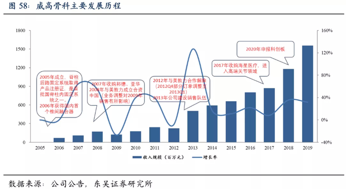 威高骨科成立于2005年,专注于骨科医疗器械领域,是国内首批进入高端植入骨科医疗器械领域的厂商之一,目前已发展成为国内骨科领域产品种类最齐全、规模第一的龙头企业,2020年申报科创板。