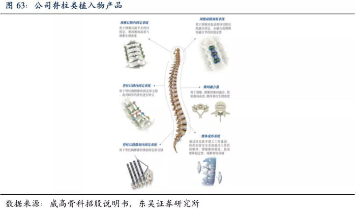 脊柱类耗材主要用于脊柱退变性疾病、脊柱骨折、脊柱畸形、肿瘤及感染等脊柱疾病的治疗,主要产品包括颈椎及胸腰椎内固定系统、颈椎前路钢板和椎间融合器等。