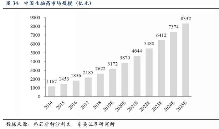 2019年全球畅销药物销售额top10的品种中有4个单抗、2个融合蛋白,国内生物药发展尚处于早期阶段,未来增长潜力强劲。随着医保覆盖范围扩大及支付能力提高等,预计中国生物药市场规模将持续增长,预灌封注射器的应用也将随之扩大。2018年中国生物药市场规模达到2622亿元,预计2025年市场规模将达到8332亿元,年均复合增长率将达18%。