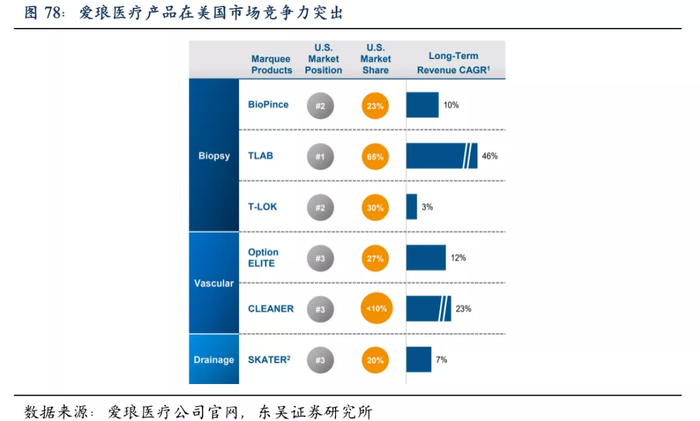 爱琅医疗产品在美国市场竞争力突出,其中活检系列、血管系列和引流导管系列等多个产品在美国占据前三的位置。爱琅医疗在高端产品代加工方面的丰富经验和高精尖技术,将与威高的制造能力形成良好互补。