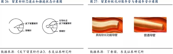 静脉留置针的核心组件包括不锈钢的穿刺引导针芯和留置导管,使用时导管和针芯一起穿刺入血管内,针芯回撤后,柔软的导管留置在血管内进行输液治疗,且不易刺破血管壁而造成液体外渗,因此降低了重复穿刺率,尤其有利于血管穿刺困难的老人、儿童、特殊体质及急救患者等。