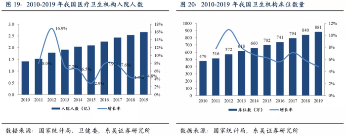 临床常规低值耗材的增长整体与卫生机构入院人数呈正相关性,随着我国卫生机构床位数量以及入院人数持续增长,我国临床常规低值耗材将有望维持稳健增长趋势。诊疗人数:2019年我国医疗卫生机构入院人数达到2.7亿人,同比增长4.8%。床位数量:2019年我国医疗卫生机构床位数量达881万张,同比增长4.8%。