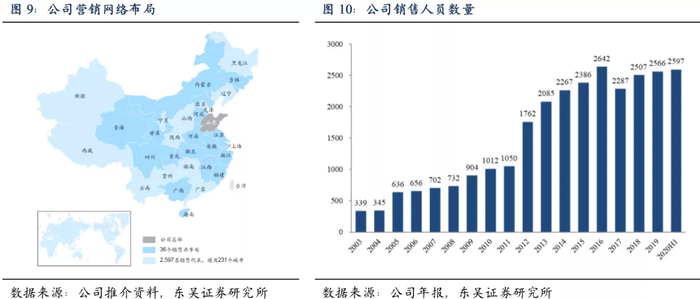 公司是中国少数具有直销网络的医用耗材企业之一,注重打造直销体系,形成覆盖全国的庞大营销网络。截止2020年6月30日,公司国内销售网络包括36个销售办事处、37个客户服务中心以及2597名销售代表。