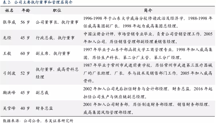 公司管理层深耕中国医疗器械行业,拥有丰富的从业经验。公司管理团队长期保持稳定,核心高管均在威高拥有15年以上的工作经验。