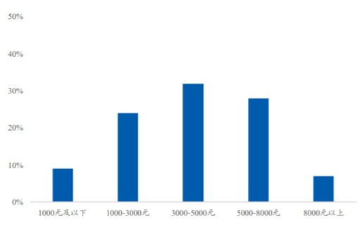 根据美团2019年财报显示,2019年餐饮外卖骑手成本为410.4亿,即其外卖佣金收入中的82.7%被用于支付骑手费用。美团外卖为骑手带来了相对丰厚的收入,在美团外卖骑手中有25.7万人是建档立卡贫困人口,其中已有25.3万人实现脱贫。网上经常传出外卖骑手工资破万甚至超过2万的情况,根据数据统计,大部分的用户收入依然在8千元以下,只有不足10%的骑手月收入可以超过8千元。