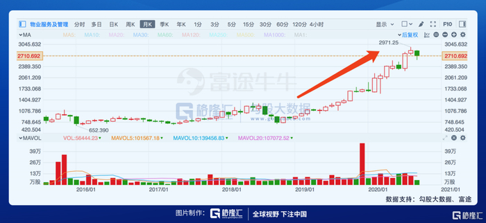 今年年初疫情爆发,港股物业板块走势异军突起,连续半年呈现整体上升趋势,成为市场的绝对焦点。拉长时间线来看,近两年来物业股获得了市场持续热捧,走势十分强劲,多只物管股实现了股价翻倍。